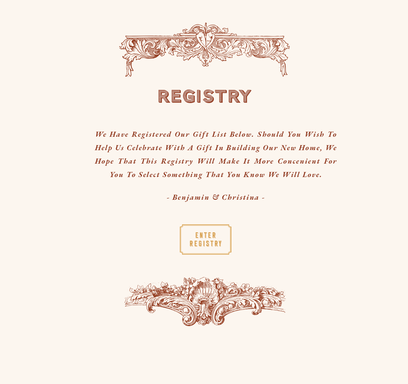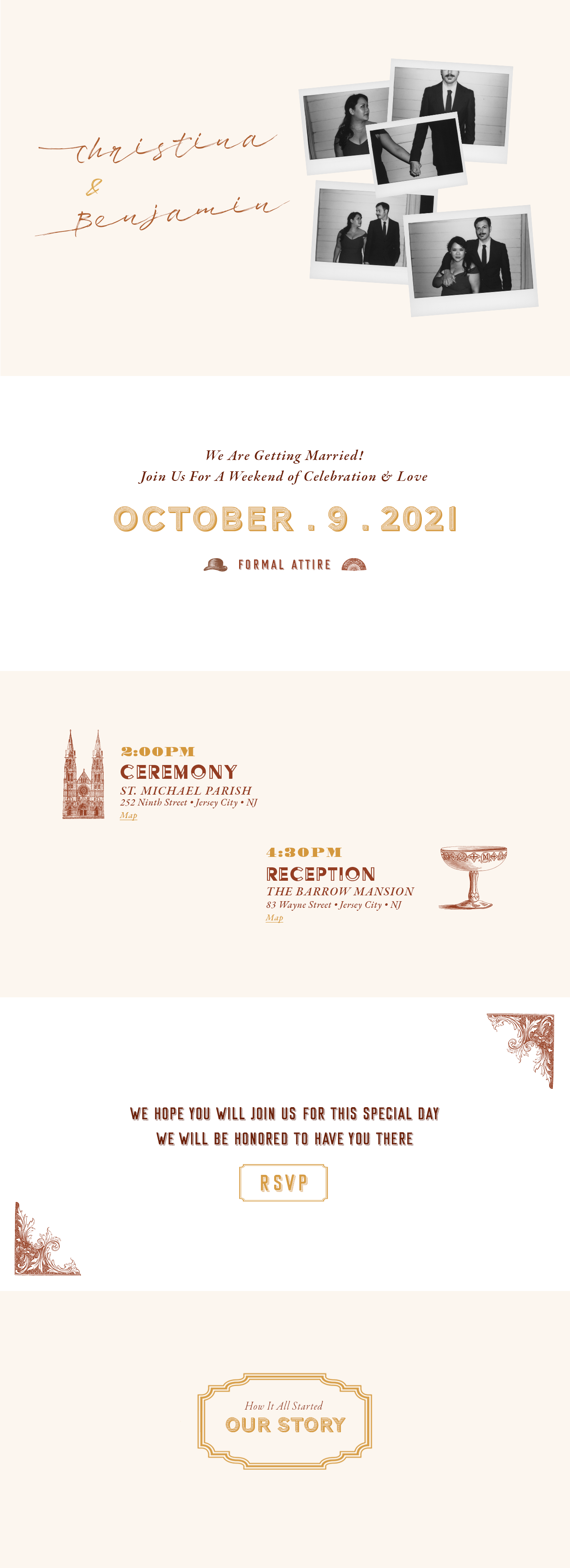 Home Our Story Travel & Stay Registry FAQ RSVP Our Story RSVP Church Venue RSVP Registry Hotel Home RSVP Email